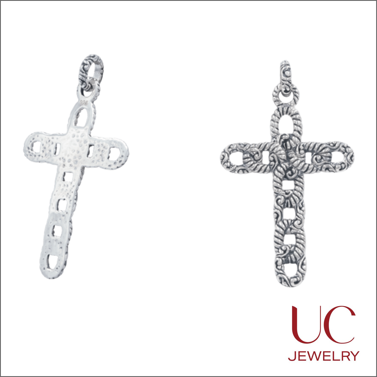 Sterling Silver Link Cross Pendant from UC Jewelry. The design blends traditional religious symbolism with a rugged, artisanal aesthetic.