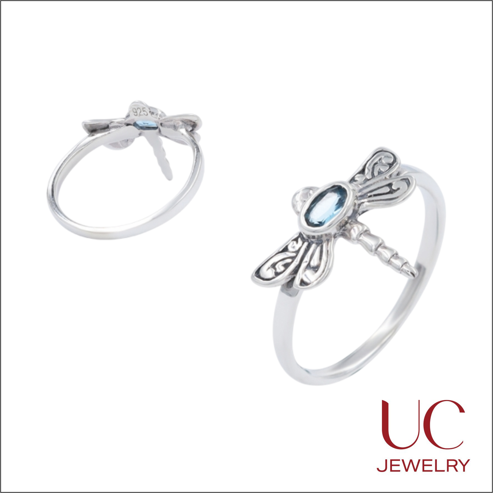 Centerpiece Gemstone: Set with a shimmering oval-cut light blue topaz (or sky-blue crystal) that acts as the dragonfly’s radiant heart.